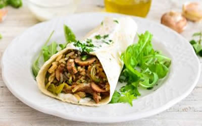 | 1. TORTILLA SA PILETINOM (marinirana grill pileća prsa, povrće, vrhnje, pikantni umak) |